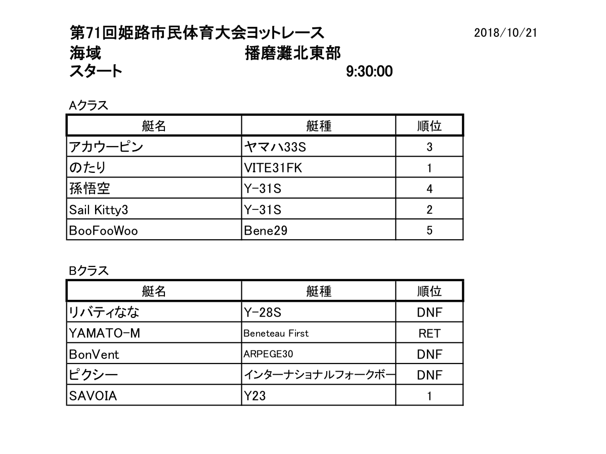 | (4)公示 | < 【公示】第71回姫路市民体育大会ヨットレース クルーザーの部 > |