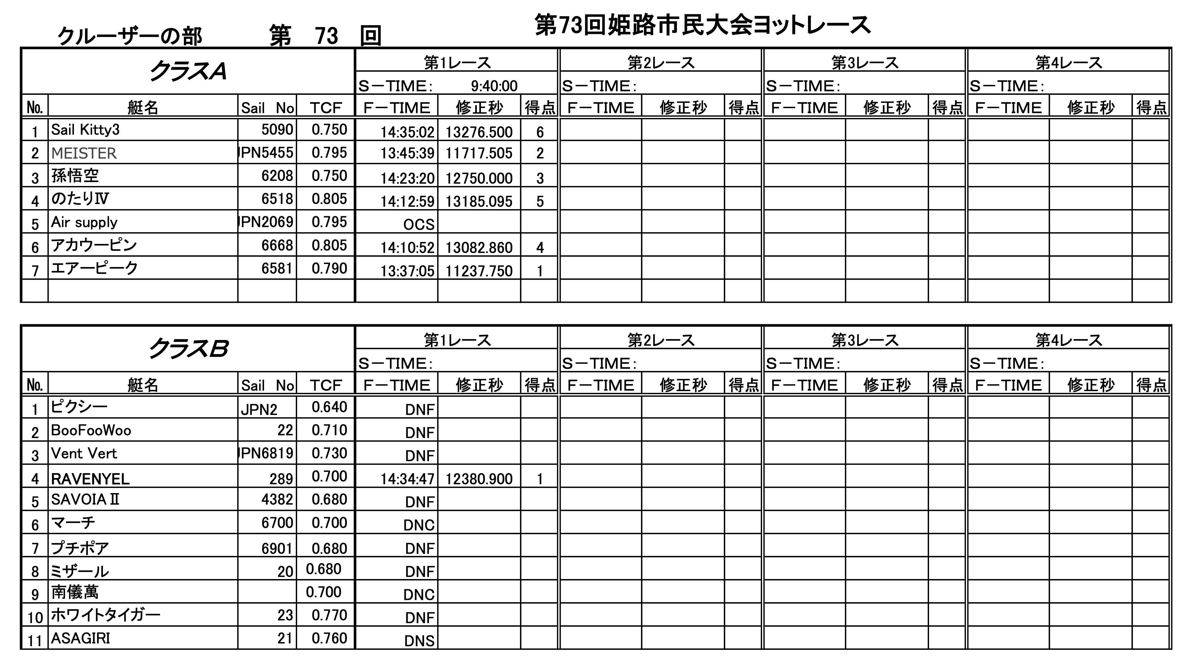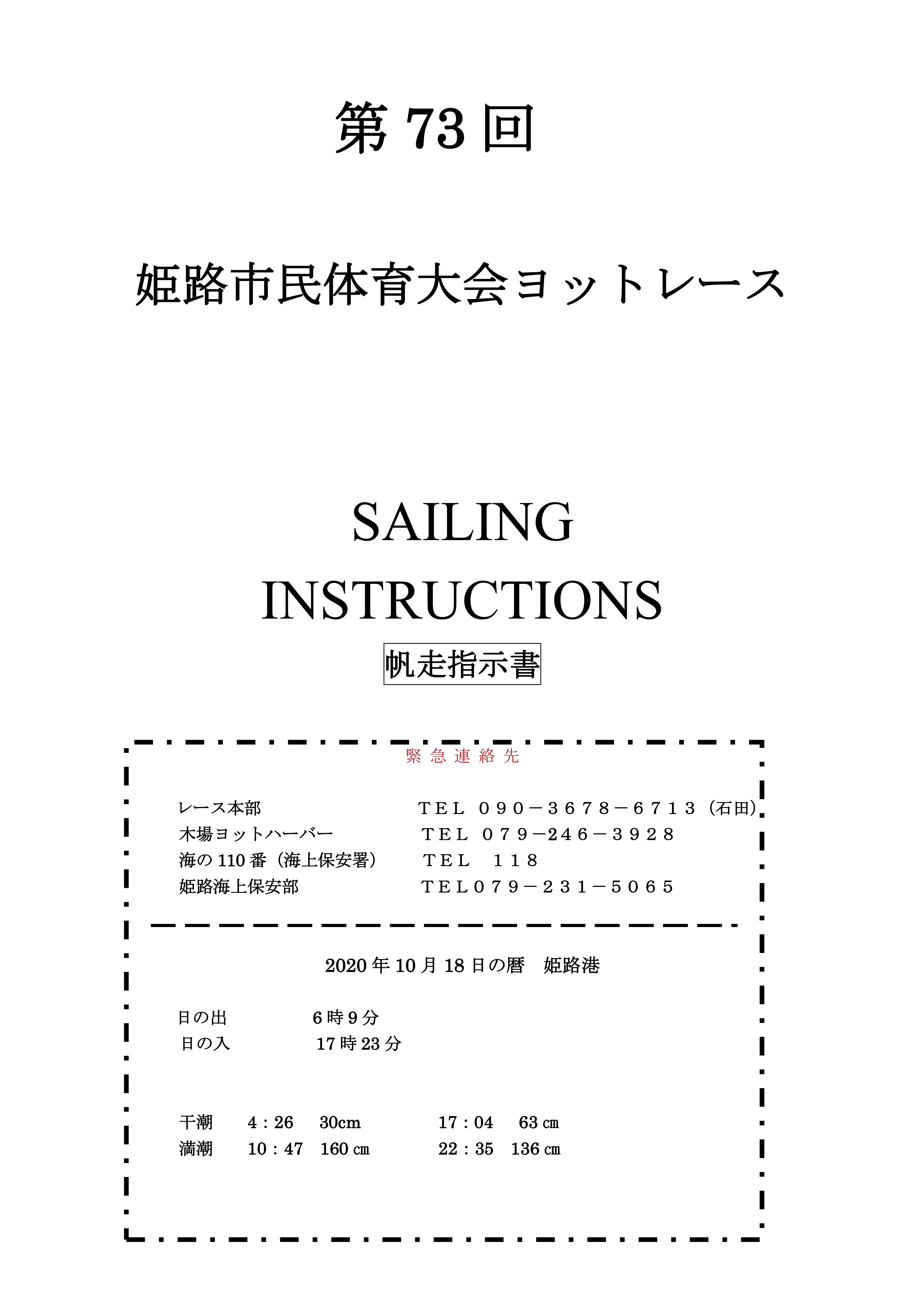 | (7)公示 | < 【公示】第73回姫路市民体育大会ヨットレース クルーザーの部 > |