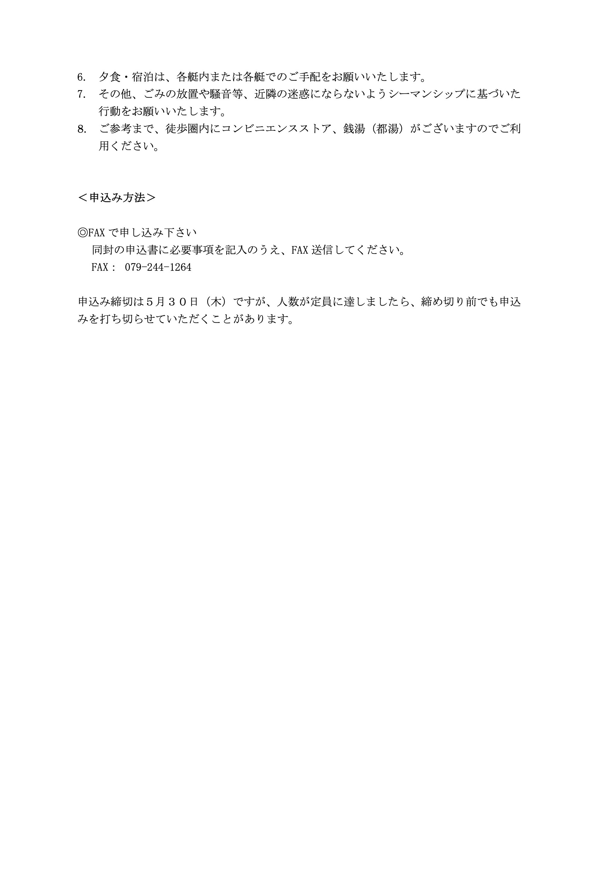 申込み締切は5月30日(木)ですが、人数が定員に達しましたら、締め切り前でも申込みを打ち切らせていただくことがあります。