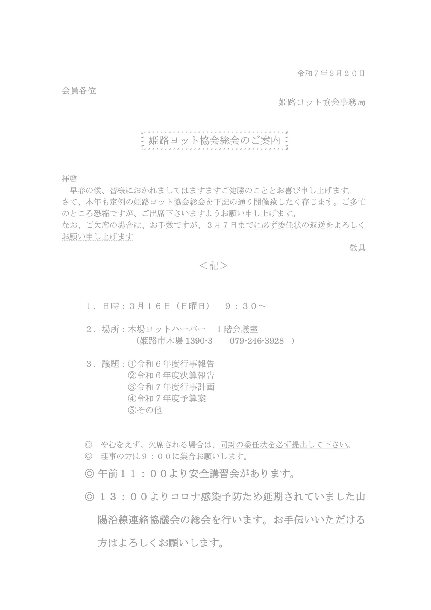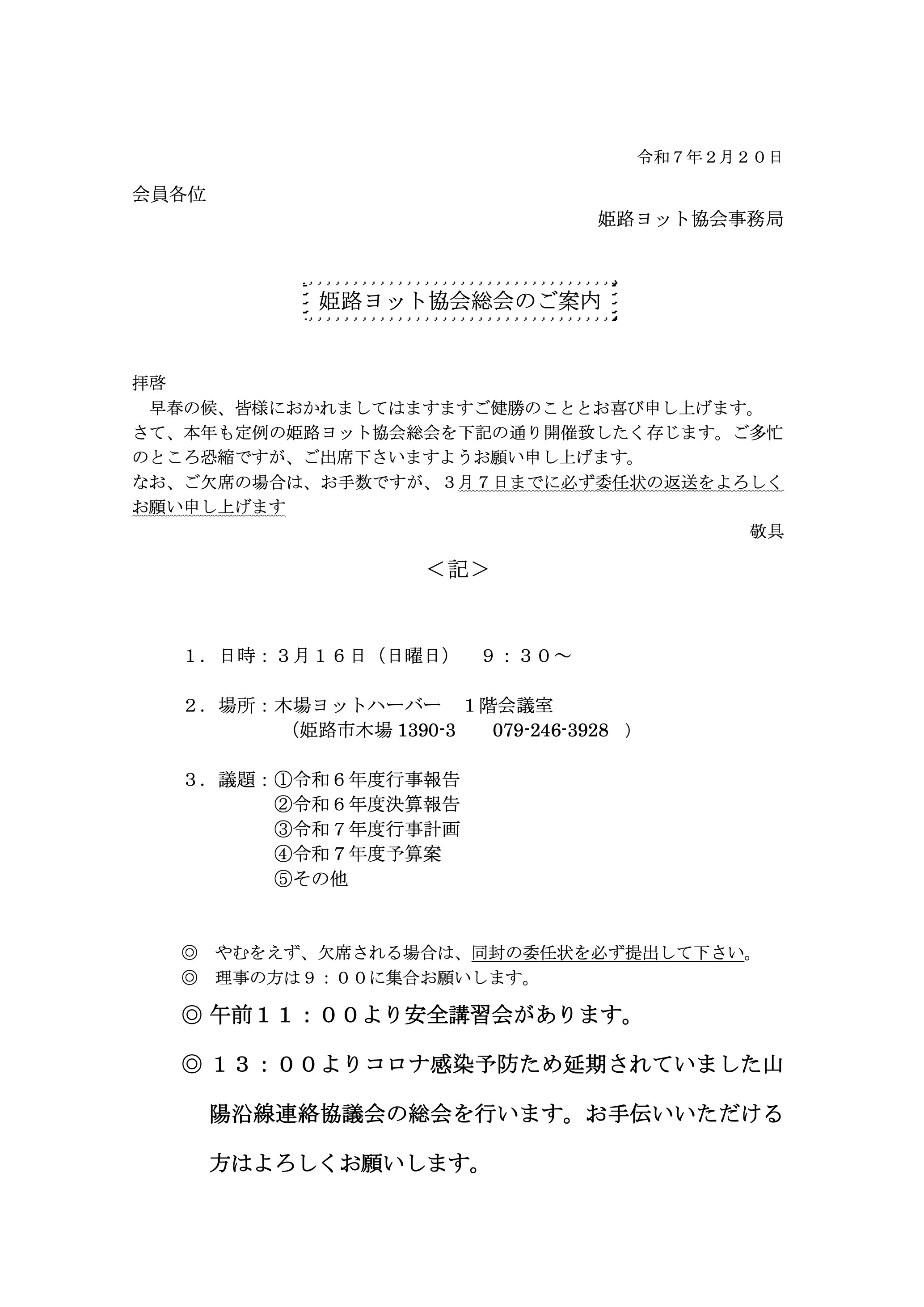 <姫路ヨット協会総会のご案内>