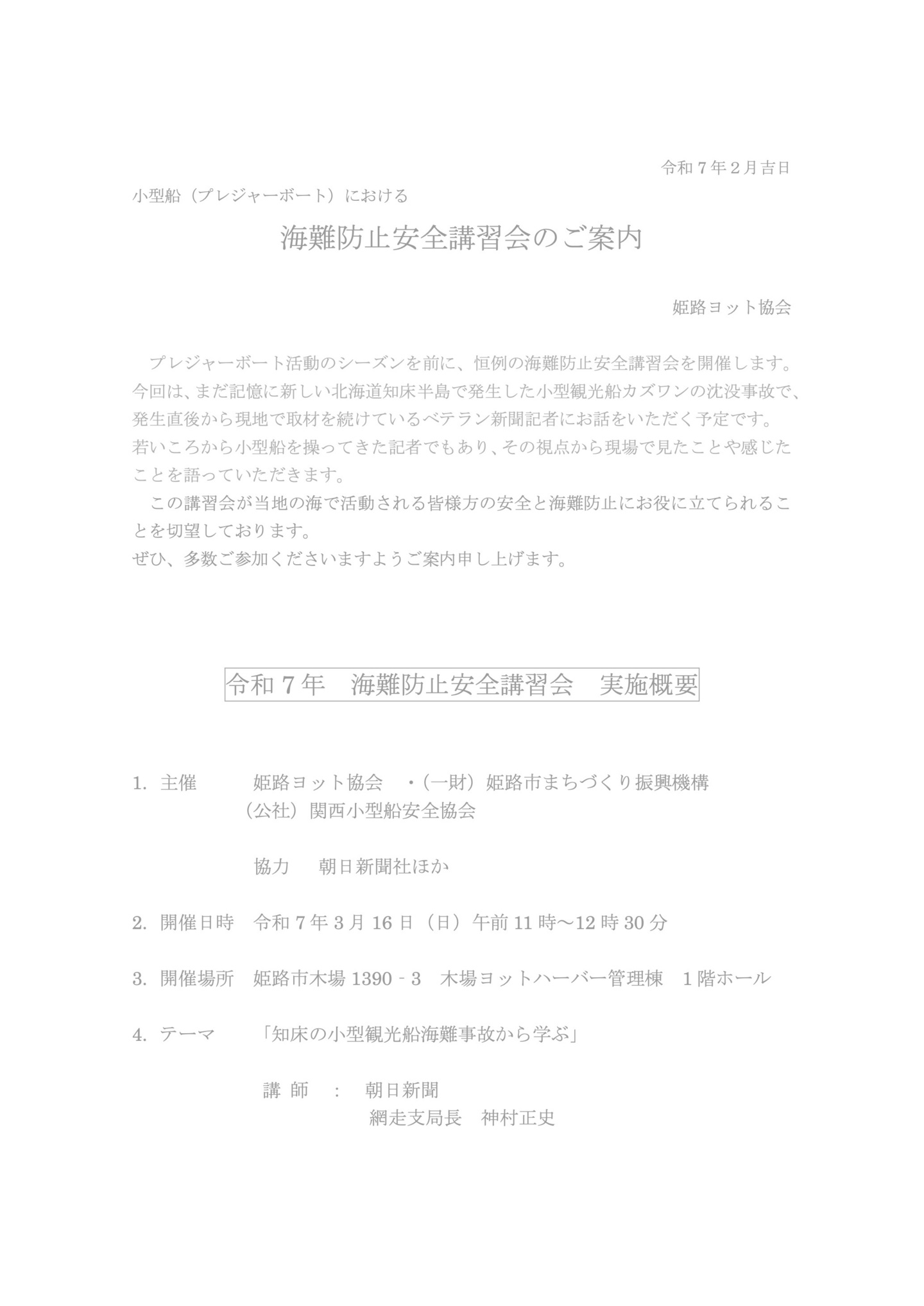 【令和7年 海難防止安全講習会 実施概要】