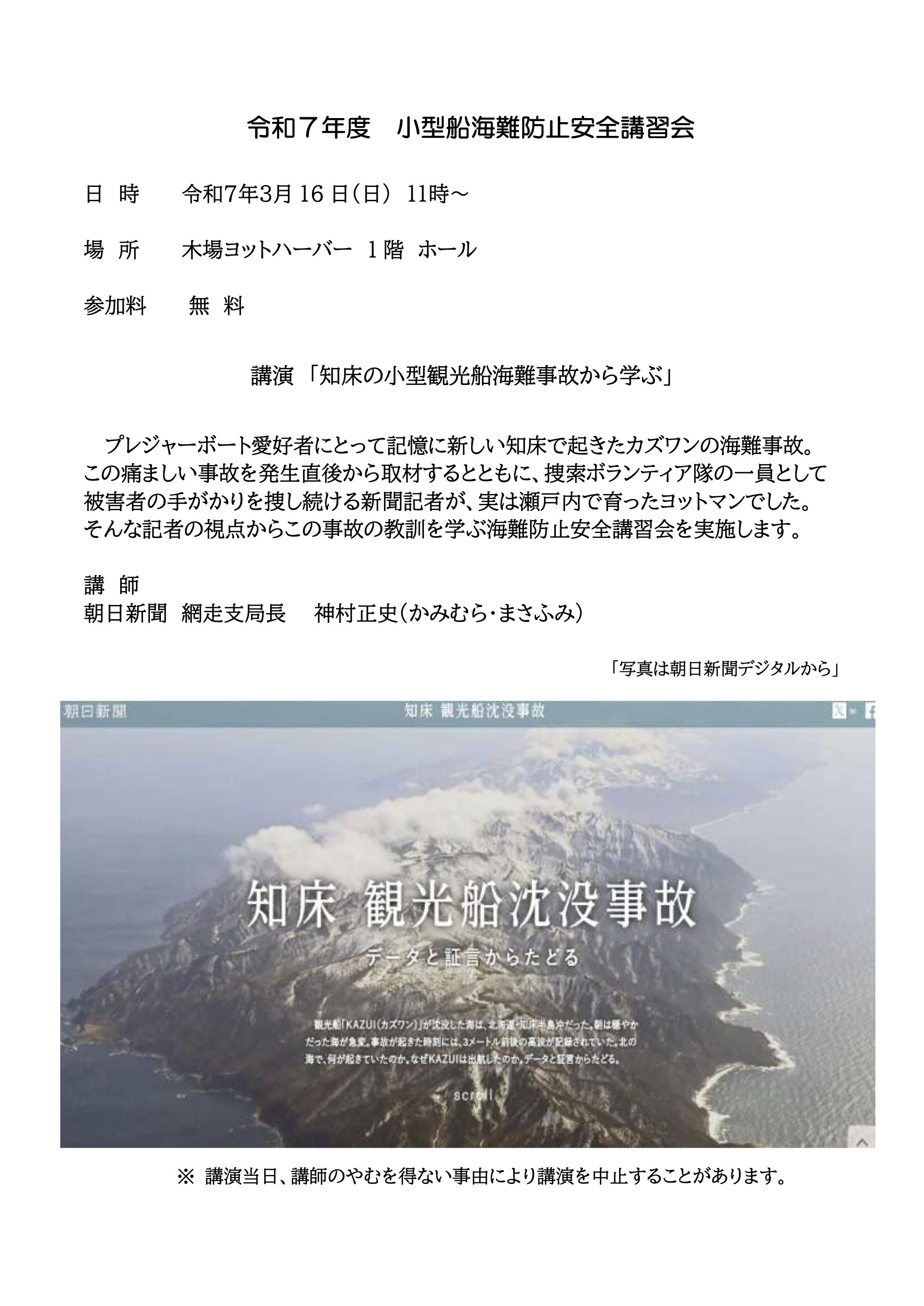 <海難防止安全講習会のご案内>