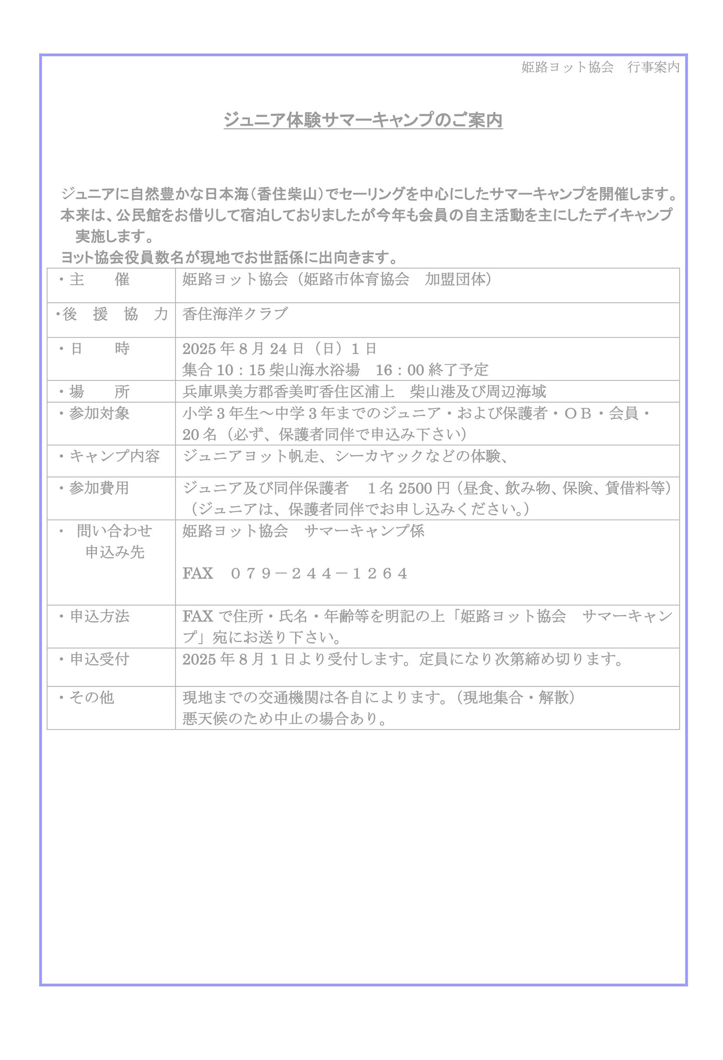「姫路ヨット協会 サマーキャンプ」宛にFAXでお送り下さい。