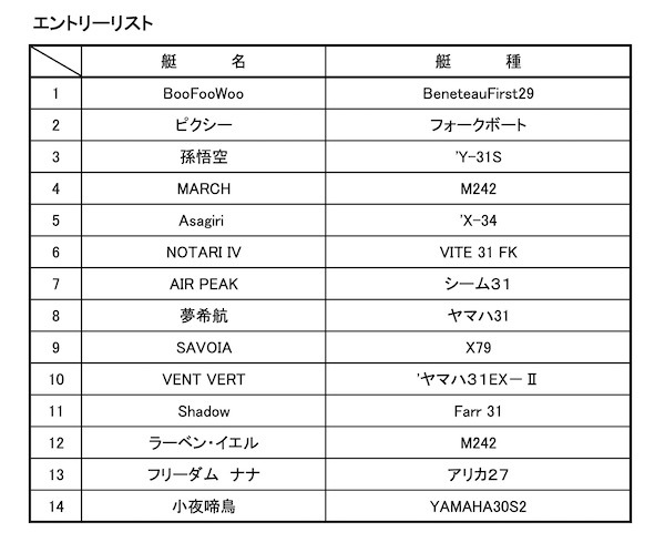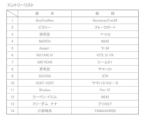 大会名称 :第78回姫路市民スポーツ大会ヨットレース クルーザーの部